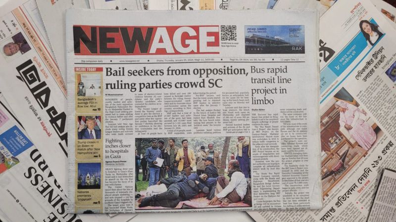 নির্বাচন ঘিরে বিভিন্ন মামলা প্রসঙ্গে নিউ এইজের প্রধান শিরোনাম, ‘Bail seekers from opposition, ruling parties crowd SC’ অর্থাৎ ‘বিরোধী ও ক্ষমতাসীন দলের জামিন প্রার্থীরা সুপ্রিম কোর্টে ভিড় করছেন’।