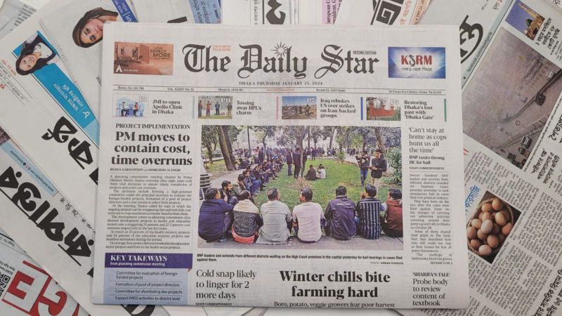 শীতের মৌসুমে কৃষি পরিস্থিতি নিয়ে দ্য ডেইলি স্টারের প্রথম পাতার খবর, ‘Winter chills bite farming hard’ অর্থাৎ, ‘শীতের প্রকোপ চাষাবাদ কঠিন করে তুলেছে’।